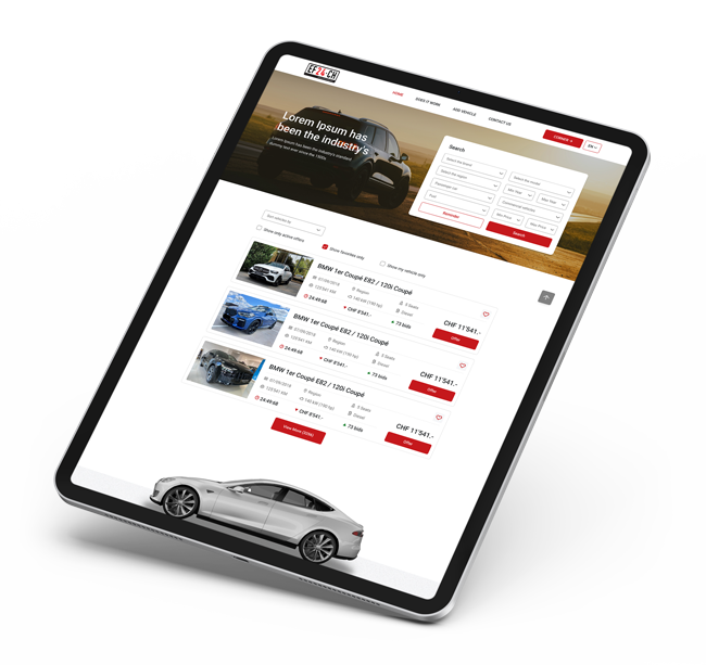 EF24.CH bietet Kunden den grössten und dynamischsten Zugang zum B2B-Automobilmarkt in der Schweiz. Damit haben wir eine zeitgemässe Plattform entwickelt, die alle wichtigen Funktionen und Anforderungen erfüllt, um erfolgreiche Auktionen im B2B-Bereich zu realisieren.