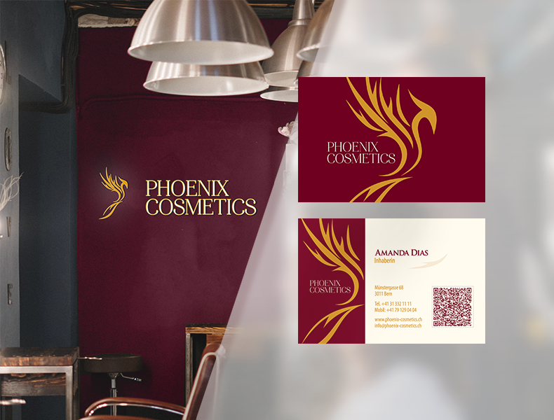Zudem designte unser Team ein aufwändiges 3D-Mockup des „Phoenix Cosmetics“ Logos, welches unter anderem gedruckt werden kann.