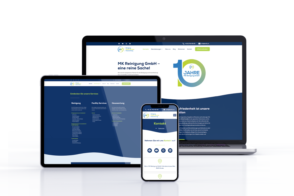 Ziel war es, die Website der MK Reinigung GmbH sowohl designtechnisch als auch inhaltlich in einem neuen Glanz erstrahlen zu lassen — passend zur Branche.